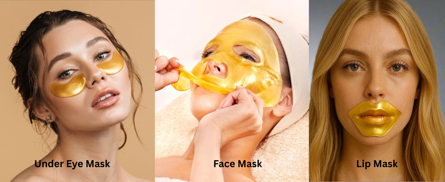 24K Gold Collagen Face, Under Eye & Lip Mask Set – Anti-Aging Hydrating Skincare, Reduces Dark Circles, Fine Lines & Puffiness – Spa Facial Treatment